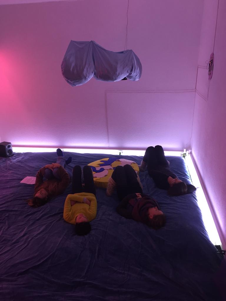 Sophie Kellner zeigt eine kritische und humorvolle Auseinandersetzung unterschiedlicher Zukunftsspekulationen im von neuen Technologien dominierten Alltag. Im immersiven Erlebnisraum wird gemeinsame Kooperation und Interaktivität erfahrbar. Möglichkeiten der sensorischen Stimulation als auch der Narration leiten an, die Dramaturgien zu erforschen und mitzugestalten.